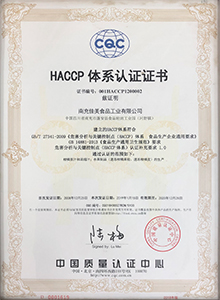 南充佳美于2008年按GB/T 27341-2009標(biāo)準(zhǔn)建立HACCP體系,同時(shí)取得HACCP 體系認(rèn)證證書